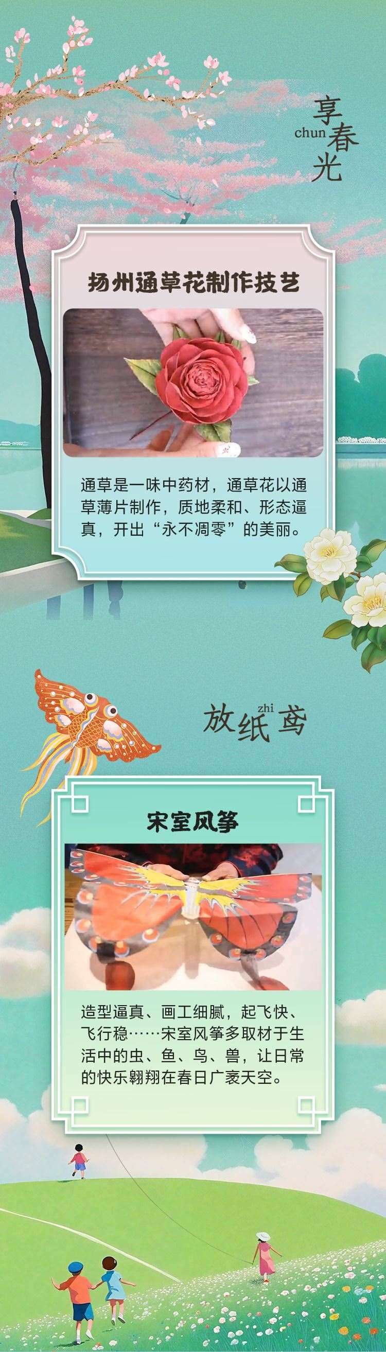 春花爛漫,踏春而行;茶香四溢,品味人生;竹林漫步,心隨風(fēng)靜;感悟春光,詩情畫意;草長鶯飛,紙鳶翩躚……賞春花、上春山、享春光,讓我們抓住春天的尾巴,與非遺國潮來一場美麗的邂逅!