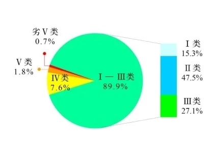 1—3月全國地表水水質(zhì)類別比例
