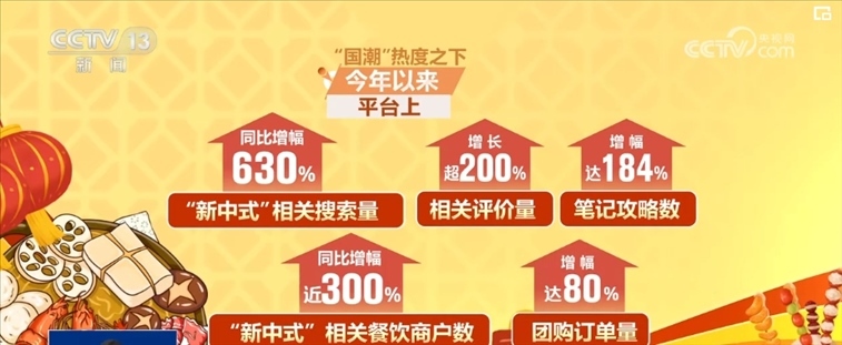 “國潮”熱度之下,2024年以來,平臺上“新中式”相關(guān)搜索量同比增幅也達(dá)到了630%,相關(guān)評價(jià)量增長超200%,筆記攻略數(shù)增幅達(dá)184%。“新中式”相關(guān)餐飲商戶數(shù)同比增幅近300%,團(tuán)購訂單量增幅達(dá)80%。