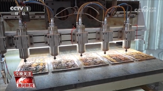 福建省天材古典工藝有限公司總經理 黃海聲:這種首飾盒,一年整個鎮(zhèn)應該向海內外銷量超過幾十萬件。傳統(tǒng)的師傅如果純手工雕刻,至少要花一個多月的時間。我們現(xiàn)在通過數(shù)字化的賦能,師傅把樣品做出來之后,通過數(shù)字化軟件傳輸給我們的機器然后進行雕刻,半天的時間就能夠生產出來。機器設備也不斷地去優(yōu)化,每刀下去的精度差不多頭發(fā)絲這么細。