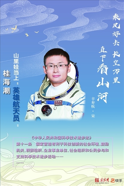 1986年,桂海潮出生在云南省保山市施甸縣一個普通家庭,本碩博就讀于北京航空航天大學宇航學院飛行器設(shè)計專業(yè),目前任該院航天飛行器技術(shù)系教授、博士生導師。他艱苦訓練、歷經(jīng)重重考核,光榮入選神舟十六號乘組,成為我國首位執(zhí)行載人飛行任務的載荷專家。