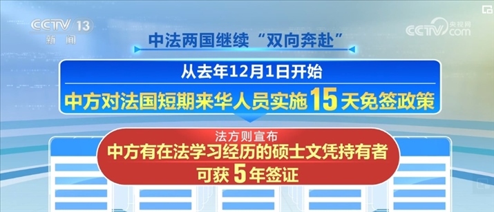 在中法文化旅游年之際,中法兩國(guó)繼續(xù)“雙向奔赴”。從2023年12月1日開(kāi)始,中方對(duì)法國(guó)短期來(lái)華人員實(shí)施15天免簽政策,法方則宣布,中方有在法學(xué)習(xí)經(jīng)歷的碩士文憑持有者可獲5年簽證。