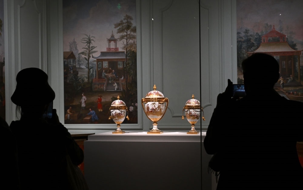 2024年4月1日,觀眾在北京故宮參觀“紫禁城與凡爾賽宮——17、18世紀的中法交往”展覽。新華社記者 金良快 攝