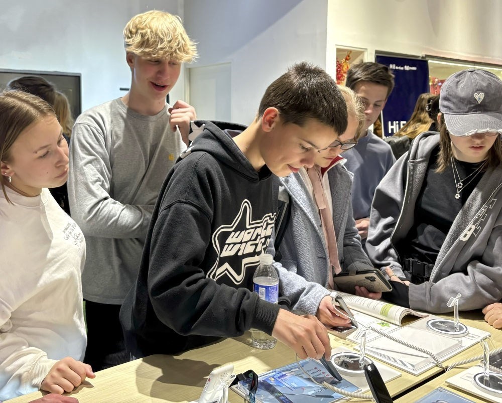 2024年4月9日,中德兩國中學生在位于北京中關(guān)村軟件園一家企業(yè)參觀。新華社記者 趙旭 攝