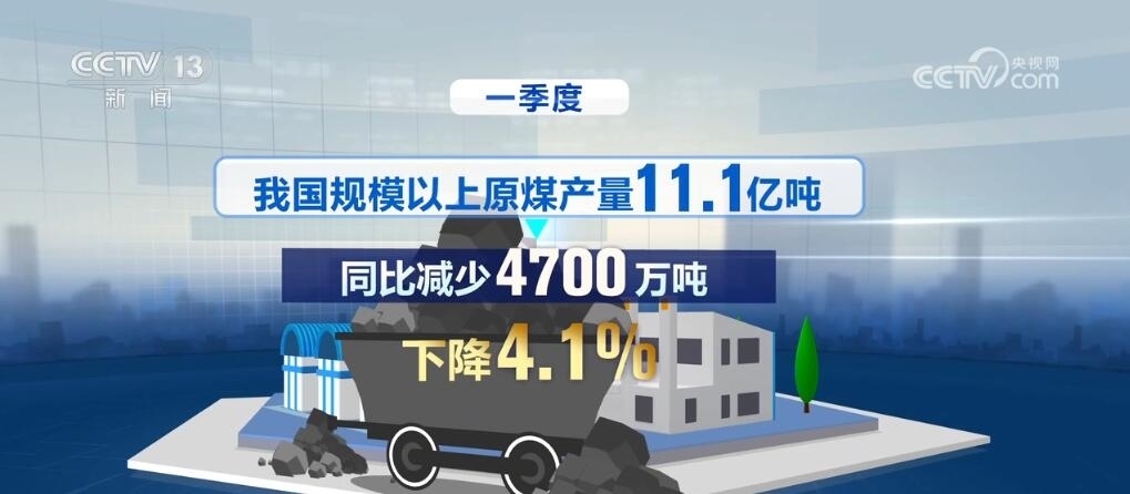 數(shù)據(jù)顯示,3月份,我國規(guī)模以上原煤產(chǎn)量4.0億噸,同比下降4.2%。一季度,我國規(guī)模以上原煤產(chǎn)量11.1億噸,同比減少4700萬噸,下降4.1%。與此同時,可再生能源發(fā)電量穩(wěn)步提升。一季度,全國可再生能源發(fā)電量達6875億千瓦時,約占全部發(fā)電量的30.7%。其中,風電光伏發(fā)電量達4253億千瓦時,同比增長25%。