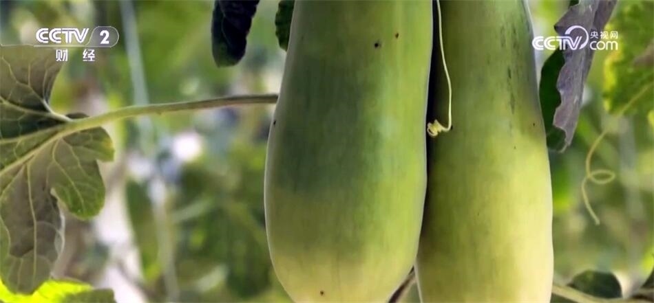 新品甜瓜好吃又好賣(mài),例如黃金25就是張愛(ài)英家賣(mài)的最好的甜瓜,在這樣一根瓜藤上,一茬兒只能生長(zhǎng)一個(gè)瓜,一個(gè)產(chǎn)季能產(chǎn)出三茬兒瓜,一茬兒比一茬更大。