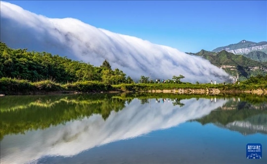 重慶市南川區(qū)金佛山東麓出現(xiàn)云瀑景觀,蒸騰的云霧順著山勢(shì)飛流而下,吸引眾多游客前來(lái)觀瀑打卡。?