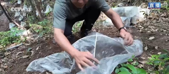 將菌棒種下后,還需要將靈芝保護(hù)起來。漫山遍野立著的一個個拱形小棚子就是靈芝的“保護(hù)罩”,在覆土種植后,工人們會搭建起小拱棚,將菌棒口包裹在內(nèi),可以有效防澇、防旱、防蟲,還能提高棚內(nèi)的二氧化碳濃度,讓生長出來的靈芝品質(zhì)更高。菌棒種下后,到7月就可以對第一撥靈芝進(jìn)行采收,到10月第二撥靈芝就已經(jīng)長成。在森林中種出的紫靈芝質(zhì)地堅(jiān)硬、形態(tài)飽滿。