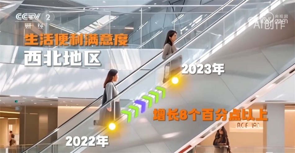 生活便利方面的滿意度較前一年增長了6個百分點。華南地區(qū)滿意度最高;西北地區(qū)增長幅度最大,達到了8個百分點以上。