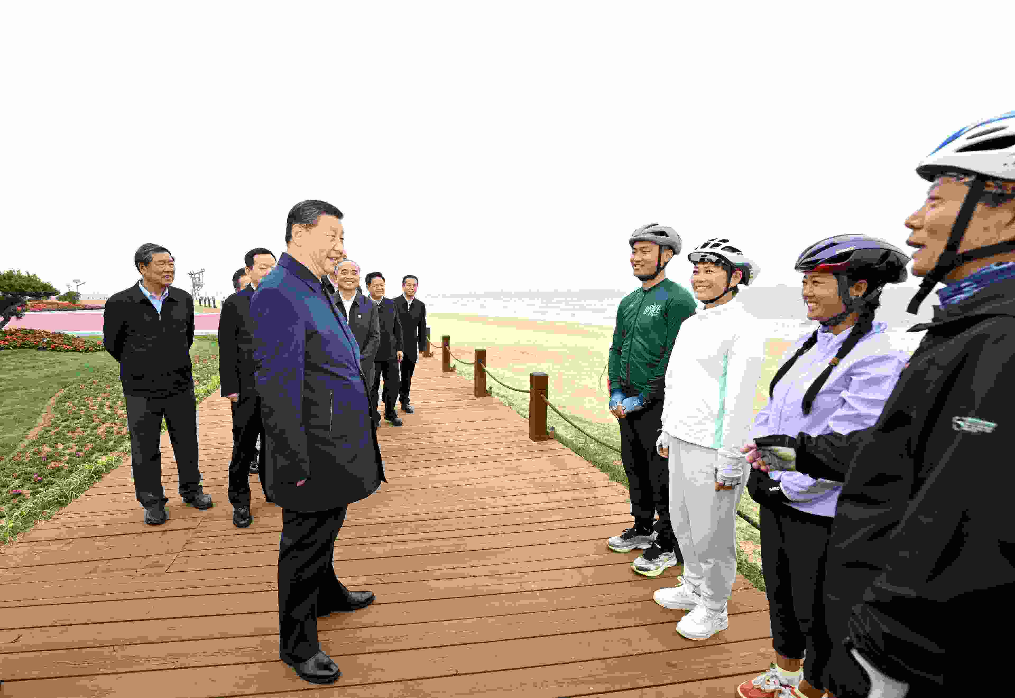 海風(fēng)輕拂,碧海藍(lán)天間,一條綠道蜿蜒向前。5月22日下午,習(xí)近平總書記來到山東日照陽光海岸綠道,了解當(dāng)?shù)丶訌姾0毒€生態(tài)保護(hù)修復(fù)、提高人民生活品質(zhì)等情況。