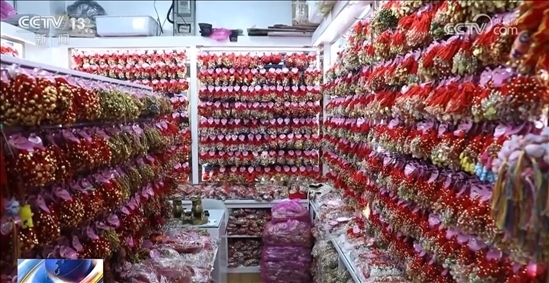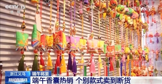 端午節(jié)人們還有佩戴香囊的習(xí)慣,來祈求平安健康。義烏市場上的香囊也同樣銷售火熱,個別款甚至已經(jīng)脫銷。