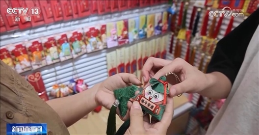 在浙江義烏國際商貿(mào)城一區(qū)的這家店鋪里,有數(shù)百款五彩繩、手鏈、香囊等商品,色彩艷麗,吸引了不少采購商。經(jīng)營戶介紹,這些搭配粽寶寶元素的五彩繩,因?yàn)轭伾?、寓意好,成為今年端午的爆款,一天最多能賣十萬多串。此外,一些龍年元素的手鏈也受到消費(fèi)者喜愛,銷量不斷攀升。