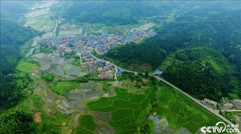 江西新余渝水區(qū)良山鎮(zhèn)黃虎村,青山、田園、道路、村庒相映成趣,構成了一幅美麗的山村圖畫。