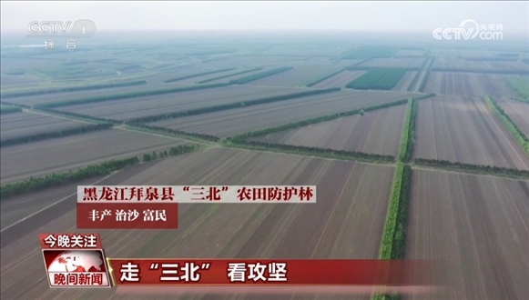 位于黑龍江的“三北”農(nóng)田防護林里,樹林呵護著田塊,種糧、治沙兩不誤。