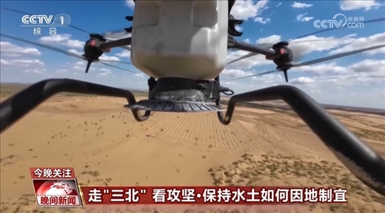 內(nèi)蒙古鄂托克旗共有977萬畝沙化土地,其中有70萬畝的明沙區(qū),治理任務(wù)面積大。這時,無人機飛播就解決了復(fù)雜地形下人車無法進入大規(guī)模播種的難題。