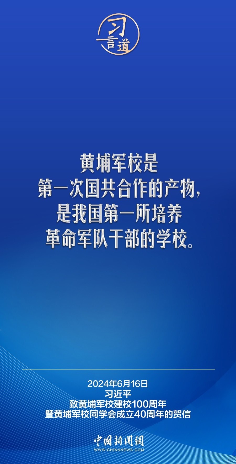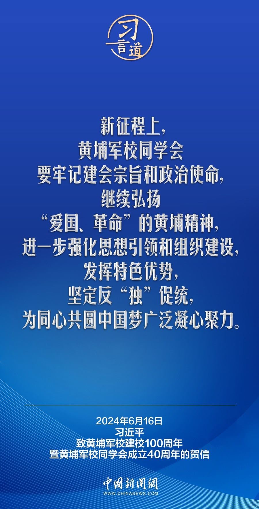 在黃埔軍校建校100周年暨黃埔軍校同學(xué)會成立40周年之際,中共中央總書記、國家主席、中央軍委主席習(xí)近平發(fā)來賀信,代表中共中央向黃埔軍校同學(xué)會表示熱烈祝賀,向廣大海內(nèi)外黃埔同學(xué)及其親屬致以誠摯問候。習(xí)近平指出——