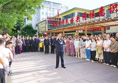 傍晚時分,社區(qū)廣場十分熱鬧,居民們看見總書記來了,紛紛圍攏過來,熱烈鼓掌歡迎。習近平親切地對大家說,時隔4年,我再次來寧夏看望各族干部群眾,見到大家非常高興!中華民族是一個大家庭,各族人民要像石榴籽一樣緊緊抱在一起。要不斷鑄牢中華民族共同體意識,把各族人民的心緊緊連在一起,把各方面的力量廣泛凝聚到一起,共同推進中國式現(xiàn)代化,共襄中華民族偉大復興的盛舉。