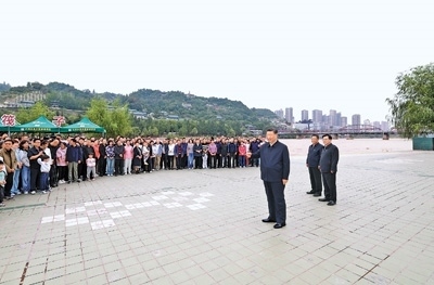 9月10日至13日,中共中央總書記、國家主席、中央軍委主席習(xí)近平在甘肅考察。這是11日下午,習(xí)近平在黃河蘭州中山橋段考察時,同在場的干部群眾親切交流。新華社記者 王 曄攝