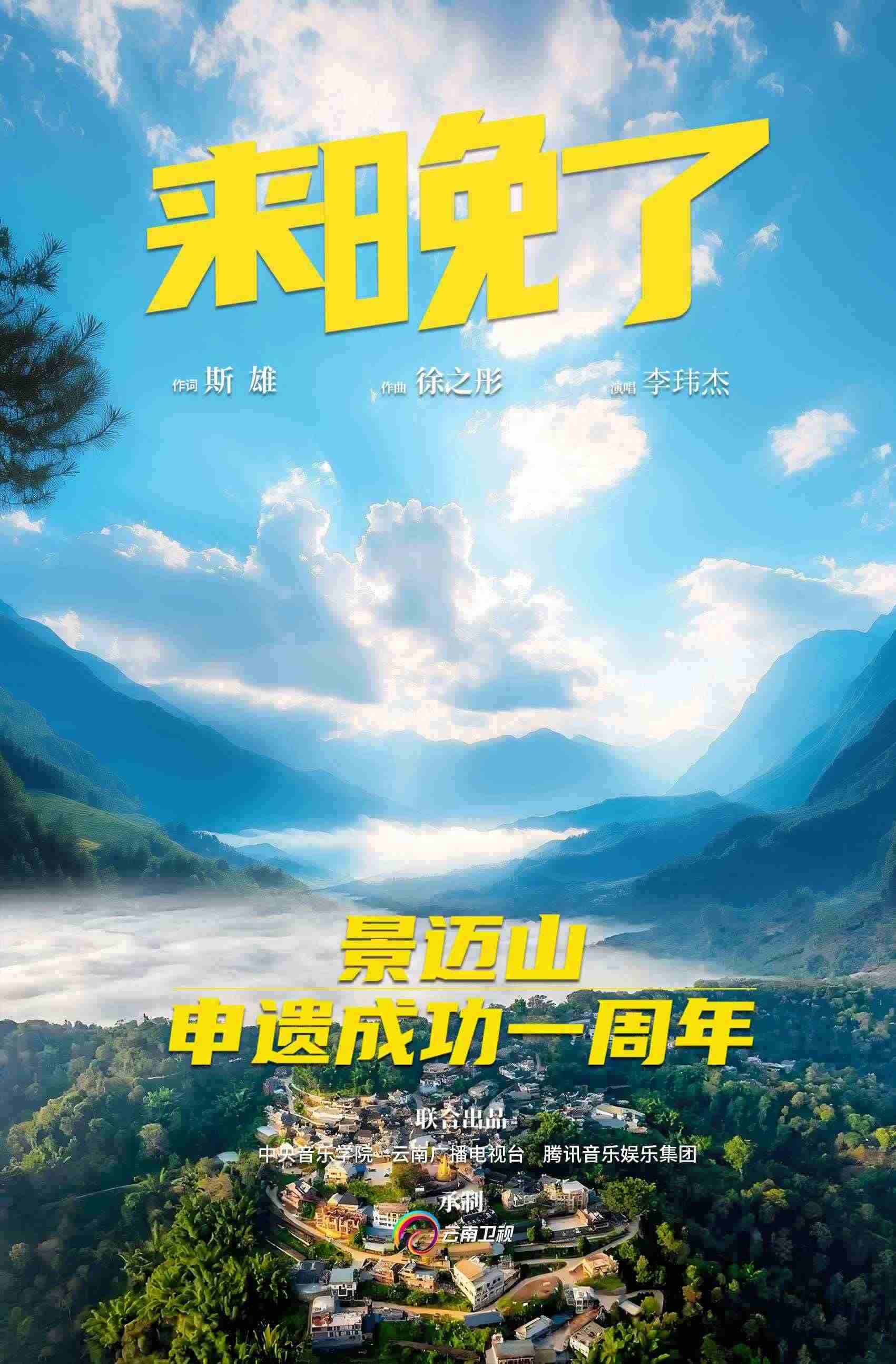 為慶祝景邁山申遺成功一周年,實景版MV《來晚了》上線啦!實景版歌曲由資深媒體人斯雄作詞,中央音樂學(xué)院徐之彤教授作曲,云南音樂人李瑋杰演唱。中央音樂學(xué)院、云南廣播電視臺、騰訊音樂娛樂集團(tuán)聯(lián)合出品,云南衛(wèi)視承制。