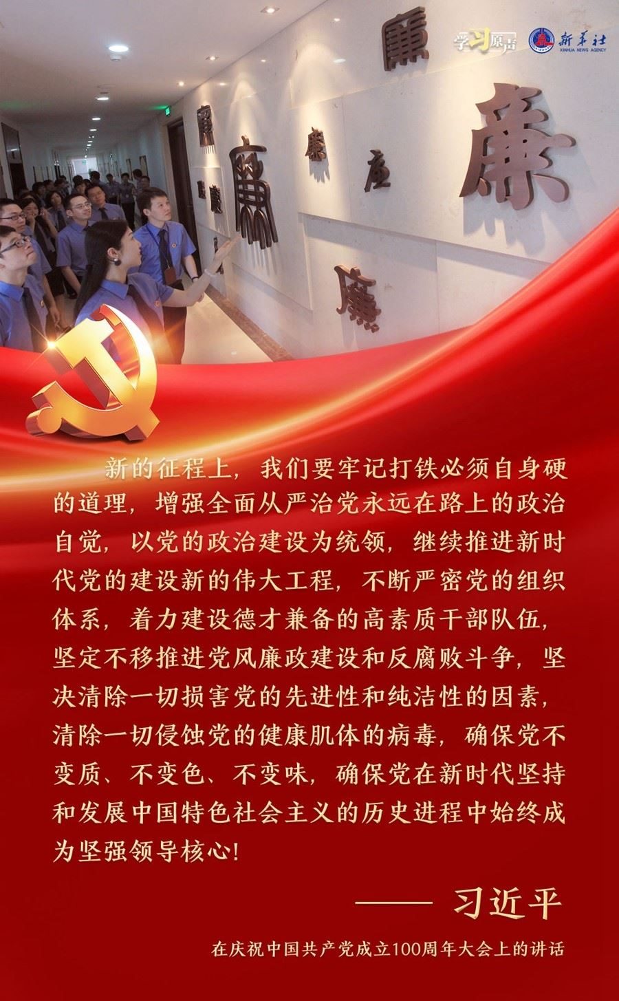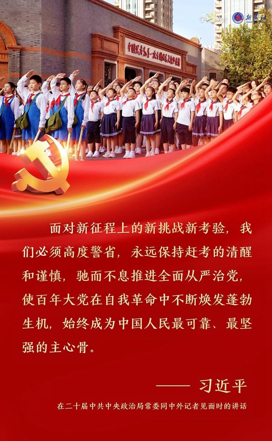 習(xí)近平總書記強調(diào),面對新征程上的新挑戰(zhàn)新考驗,我們必須高度警省,永遠(yuǎn)保持趕考的清醒和謹(jǐn)慎,馳而不息推進(jìn)全面從嚴(yán)治黨,使百年大黨在自我革命中不斷煥發(fā)蓬勃生機(jī),始終成為中國人民最可靠、最堅強的主心骨。