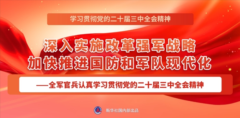 點擊標題看詳情:深入實施改革強軍戰(zhàn)略,加快推進國防和軍隊現(xiàn)代化——全軍官兵認真學(xué)習貫徹黨的二十屆三中全會精神