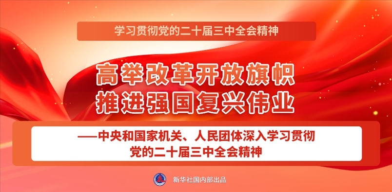 點擊標題看詳情:高舉改革開放旗幟 推進強國復(fù)興偉業(yè)——中央和國家機關(guān)、人民團體深入學(xué)習貫徹黨的二十屆三中全會精神