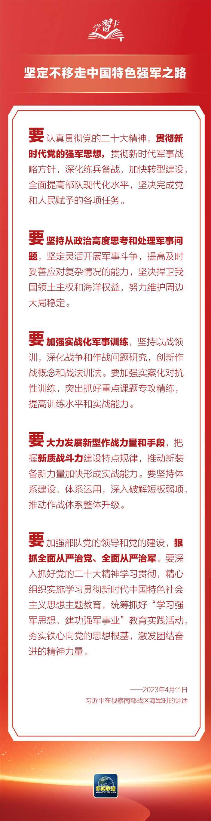 強(qiáng)國(guó)必須強(qiáng)軍,軍強(qiáng)才能國(guó)安。習(xí)近平總書記在不同場(chǎng)合多次就強(qiáng)軍興軍發(fā)表重要論述。他強(qiáng)調(diào),黨對(duì)軍隊(duì)的絕對(duì)領(lǐng)導(dǎo),是人民軍隊(duì)的建軍之本、強(qiáng)軍之魂。在八一建軍節(jié)到來(lái)之際,一起學(xué)習(xí)↓↓