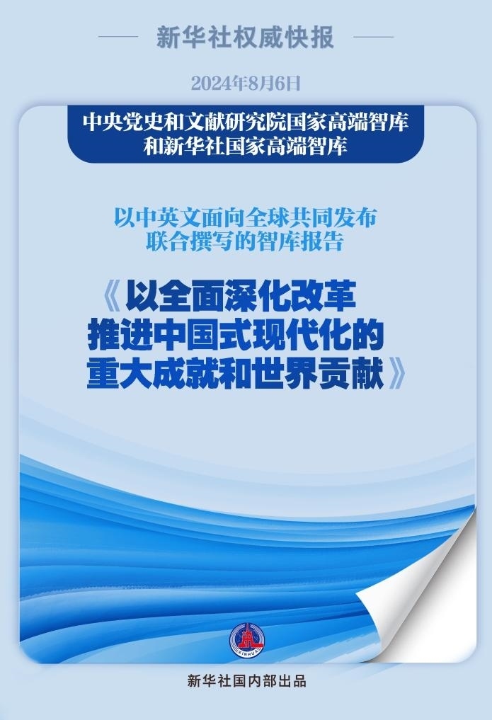 “紅廳論壇:讀懂中國(guó)共產(chǎn)黨二十屆三中全會(huì)”主題研討會(huì)8月6日在中國(guó)共產(chǎn)黨歷史展覽館紅色大廳舉行。會(huì)上,中央黨史和文獻(xiàn)研究院國(guó)家高端智庫(kù)和新華社國(guó)家高端智庫(kù)以中英文面向全球共同發(fā)布聯(lián)合撰寫的智庫(kù)報(bào)告《以全面深化改革推進(jìn)中國(guó)式現(xiàn)代化的重大成就和世界貢獻(xiàn)》。