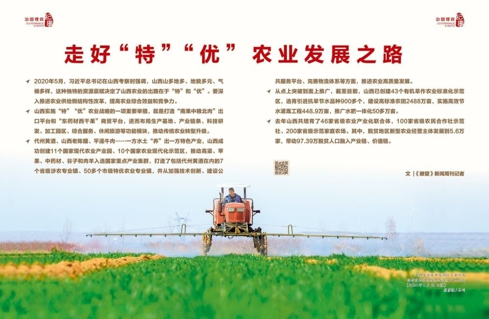 2020年5月,習(xí)近平總書(shū)記在山西考察時(shí)強(qiáng)調(diào),山西山多地多、地貌多元、氣候多樣,這種獨(dú)特的資源稟賦決定了山西農(nóng)業(yè)的出路在于“特”和“優(yōu)”。要深入推進(jìn)農(nóng)業(yè)供給側(cè)結(jié)構(gòu)性改革,提高農(nóng)業(yè)綜合效益和競(jìng)爭(zhēng)力。