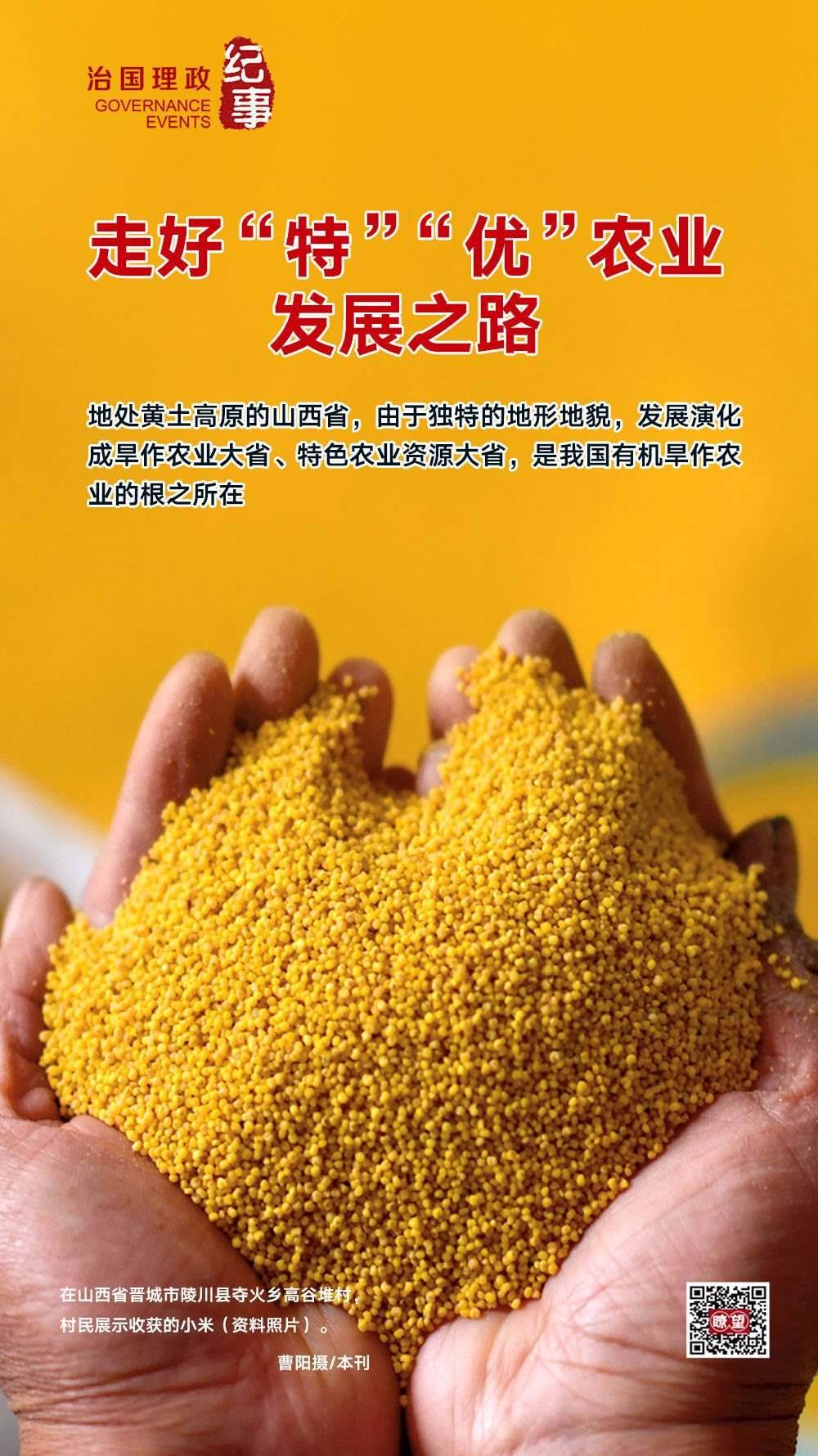 ◇2020年5月,習(xí)近平總書(shū)記在山西考察時(shí)強(qiáng)調(diào),山西山多地多、地貌多元、氣候多樣,這種獨(dú)特的資源稟賦決定了山西農(nóng)業(yè)的出路在于“特”和“優(yōu)”。要深入推進(jìn)農(nóng)業(yè)供給側(cè)結(jié)構(gòu)性改革,提高農(nóng)業(yè)綜合效益和競(jìng)爭(zhēng)力。