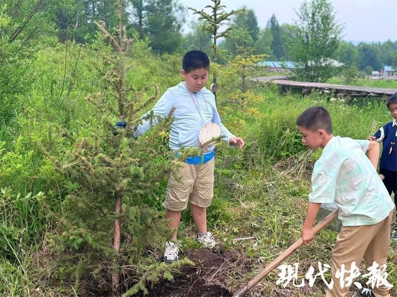 這樣的美麗風(fēng)景讓第一次來(lái)到大草原的周云昊很興奮。“我們從當(dāng)?shù)亓私獾?,這是一代又一代人努力的結(jié)果,讓我們也深切感受到生態(tài)保護(hù)的重要性。”研學(xué)途中,周云昊和小伙伴們還專(zhuān)門(mén)在當(dāng)?shù)亓謭?chǎng)種下一棵樹(shù)。“希望它能健康長(zhǎng)大,成為守護(hù)綠色草原的小衛(wèi)士?!?/p>