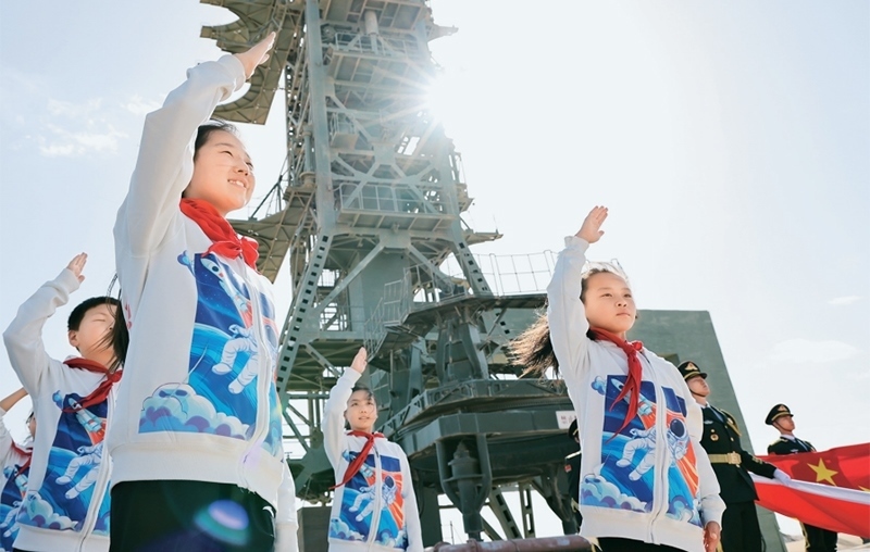 少先隊(duì)是建設(shè)社會主義和共產(chǎn)主義的預(yù)備隊(duì)。廣大少先隊(duì)員在少先隊(duì)這所大學(xué)校里立志向、修品行、練本領(lǐng),從小培養(yǎng)熱愛黨、熱愛祖國、熱愛人民的情懷,展現(xiàn)出朝氣蓬勃的精神風(fēng)貌。2024年4月24日是第九個(gè)“中國航天日”,“紅領(lǐng)巾愛祖國——我心中的五星紅旗”主題活動在中國酒泉衛(wèi)星發(fā)射中心東方紅衛(wèi)星發(fā)射場舉行。圖為當(dāng)日,來自內(nèi)蒙古、甘肅、四川等地的少先隊(duì)員在中國酒泉衛(wèi)星發(fā)射中心東方紅衛(wèi)星發(fā)射塔架下敬隊(duì)禮。 新華社記者 金立旺/攝
