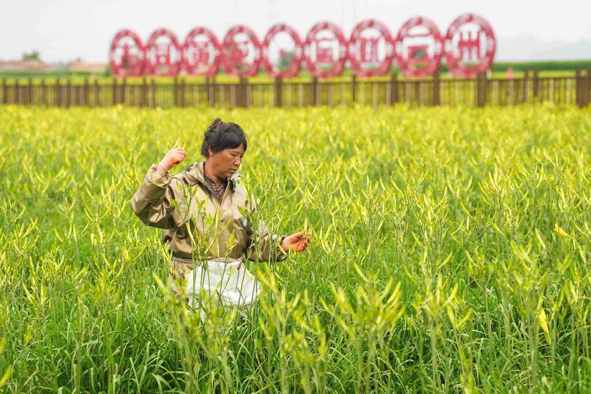 (山西大同,農(nóng)民采摘黃花)
