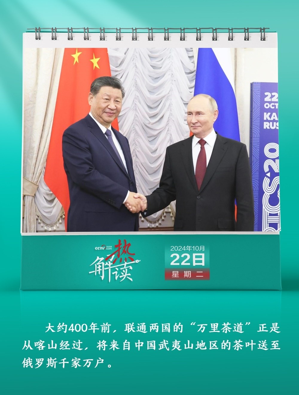 10月22日,習(xí)近平主席在俄羅斯喀山克里姆林宮同普京總統(tǒng)舉行年內(nèi)第三次會(huì)晤。在會(huì)談中,習(xí)主席提到一條名為“萬(wàn)里茶道”的古老商道。