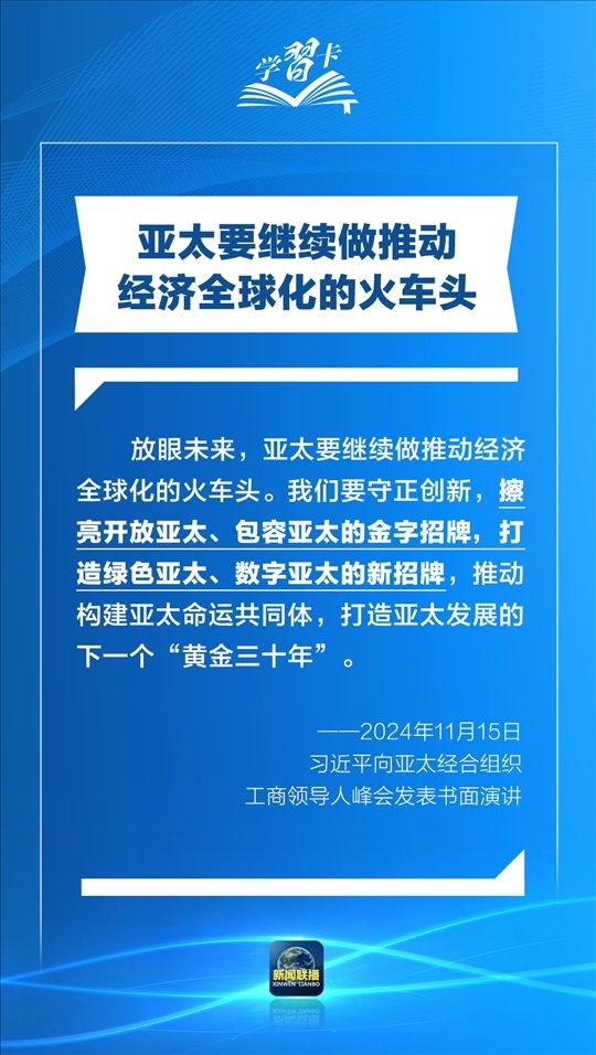 習近平指出,過去30年,亞太地區(qū)經(jīng)濟保持了強勁增長,創(chuàng)造了舉世矚目的“亞太奇跡”。如何推動構建亞太命運共同體,打造亞太發(fā)展的下一個“黃金三十年”?習主席強調了一個關鍵詞:經(jīng)濟全球化。一起學習↓