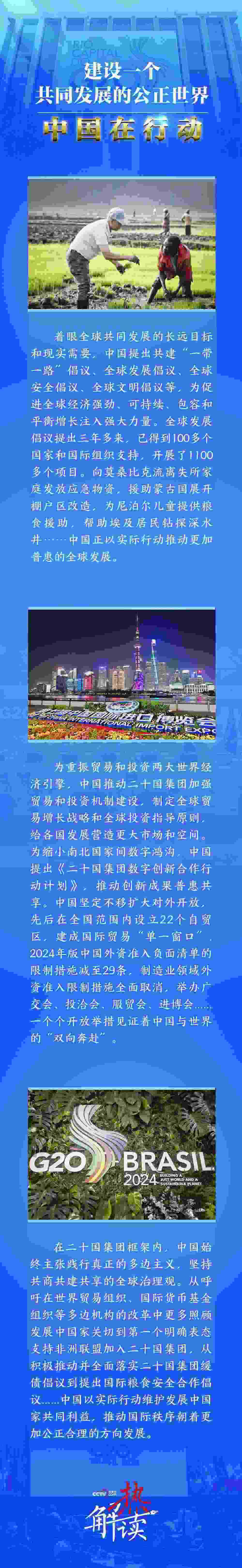 在新設(shè)立7000億元人民幣融資窗口、絲路基金新增資金800億元人民幣基礎(chǔ)上,進(jìn)一步建設(shè)立體互聯(lián)互通網(wǎng)絡(luò);在已經(jīng)開(kāi)展1100多個(gè)發(fā)展項(xiàng)目基礎(chǔ)上,建設(shè)好“全球南方”研究中心,繼續(xù)用好200億美元資金窗口支持發(fā)展中國(guó)家……中國(guó)的每一項(xiàng)行動(dòng)都是實(shí)實(shí)在在的支持,都是滿懷誠(chéng)意的攜手。