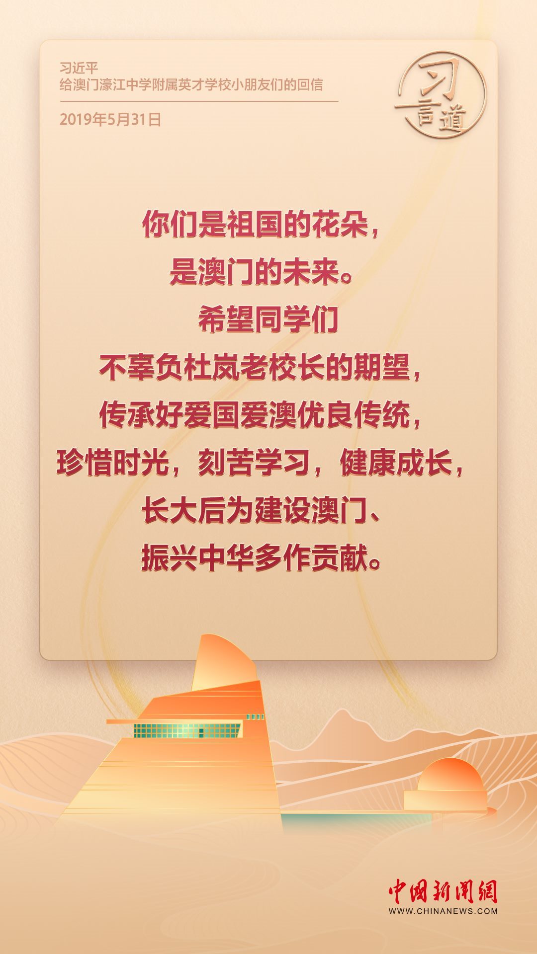 2024年是澳門回歸祖國(guó)25周年。多年來(lái),習(xí)近平主席始終關(guān)注澳門經(jīng)濟(jì)社會(huì)發(fā)展、百姓福祉,寄語(yǔ)“澳門的發(fā)展厚積薄發(fā)、未來(lái)可期”。