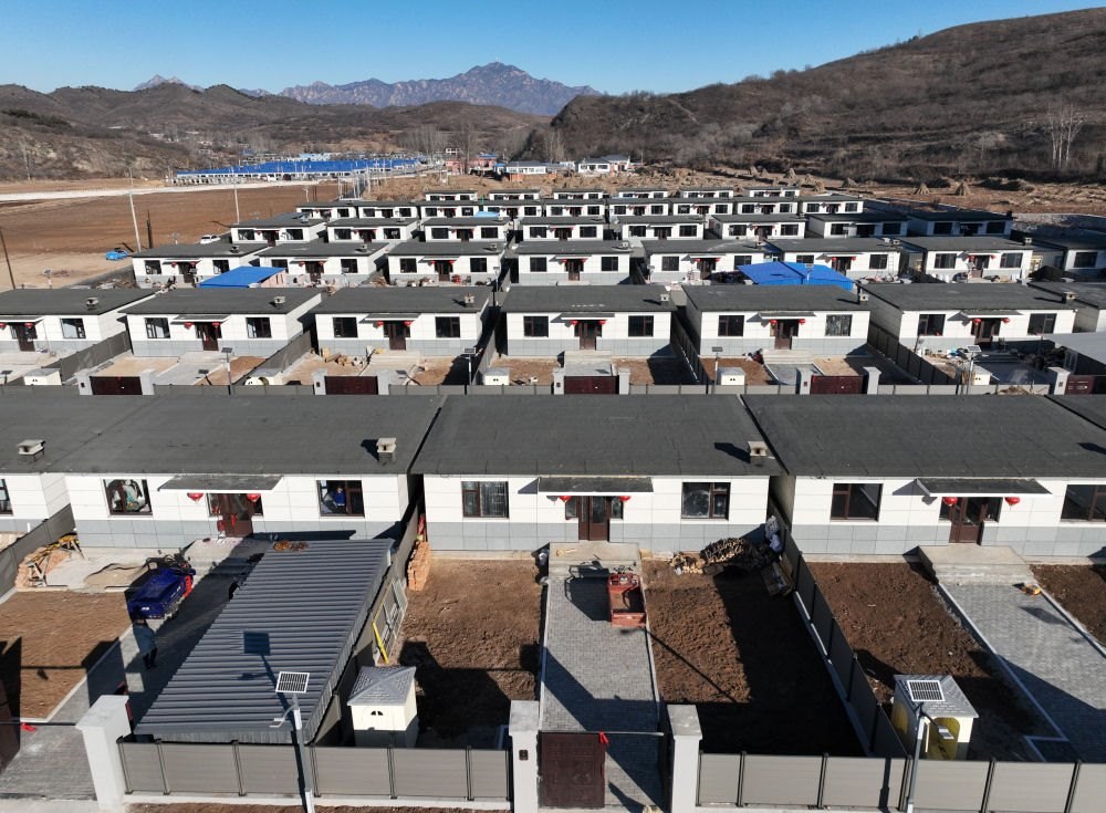 這是遼寧省葫蘆島市建昌縣黑山科鄉(xiāng)楊樹底下村的集中安置重建住房(2024年12月17日攝,無人機(jī)照片)。新華社記者 李鋼 攝