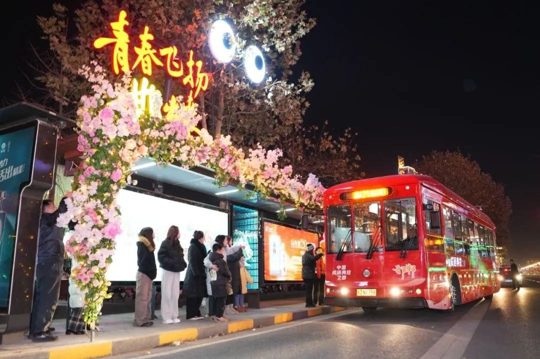 “公交車,既是城市流動的‘風(fēng)景線’,也是‘文化線’?!焙惞患瘓F運營服務(wù)部部長李昀說,全市已推出26路、9路、33路等多條成語文化線路。此外,在53條線路995輛車輛外觀布置成語視覺圖像,在136部公交車內(nèi)打造了“小型成語主題展館”,推出了兩輛夜間成語燈光巴士,建設(shè)了72個成語主題公交站亭。