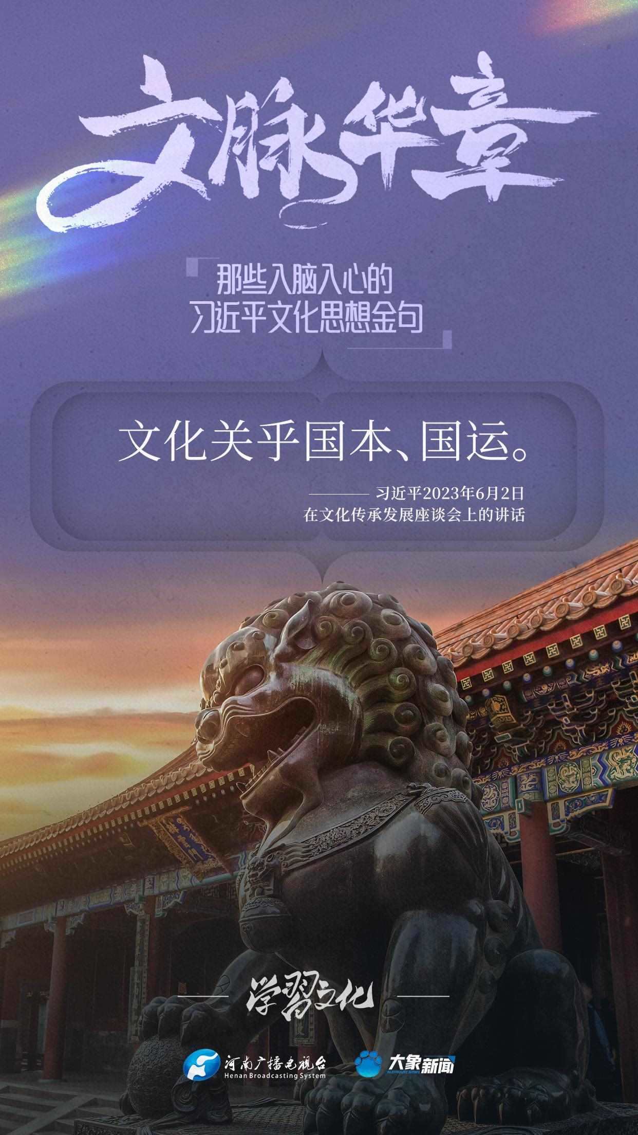 大象新聞將持續(xù)梳理,推出系列策劃《那些入腦入心的習(xí)近平文化思想金句》,邀您一起認(rèn)真品讀。今天推出《文化是一個(gè)國家、一個(gè)民族的靈魂》。