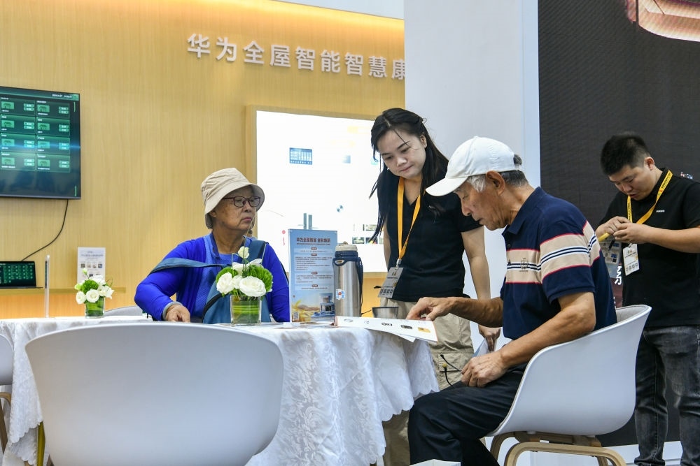 2024年10月27日,兩名老人在2024深圳國際智慧養(yǎng)老產(chǎn)業(yè)博覽會上了解智慧康養(yǎng)產(chǎn)品。近年來,一大批民營企業(yè)聚焦民生重點,以前沿技術和市場化手段提供破題方案,體現(xiàn)出民營經(jīng)濟促創(chuàng)新、惠民生的時代擔當。