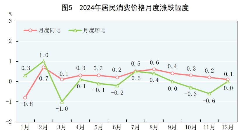 全年居民消費(fèi)價(jià)格比上年上漲0.2%。工業(yè)生產(chǎn)者出廠價(jià)格下降2.2%。工業(yè)生產(chǎn)者購(gòu)進(jìn)價(jià)格下降2.2%。農(nóng)產(chǎn)品生產(chǎn)者價(jià)格[9]下降0.9%。12月份,70個(gè)大中城市中,新建商品住宅銷(xiāo)售價(jià)格環(huán)比上漲的城市個(gè)數(shù)為23個(gè),持平的為4個(gè),下降的為43個(gè);二手住宅銷(xiāo)售價(jià)格環(huán)比上漲的城市個(gè)數(shù)為9個(gè),持平的為1個(gè),下降的為60個(gè);新建商品住宅銷(xiāo)售價(jià)格同比上漲的城市個(gè)數(shù)為2個(gè),下降的為68個(gè);二手住宅銷(xiāo)售價(jià)格同比下降的城市個(gè)數(shù)為70個(gè)。