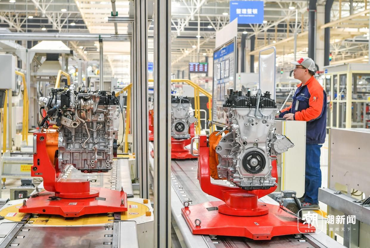 義烏吉利發(fā)動(dòng)機(jī)工廠的生產(chǎn)車(chē)間內(nèi),技術(shù)工人在智能化裝配流水線上趕制油電混動(dòng)汽車(chē)發(fā)動(dòng)機(jī)的生產(chǎn)訂單。記者 金思成 通訊員 時(shí)寬兵 攝
