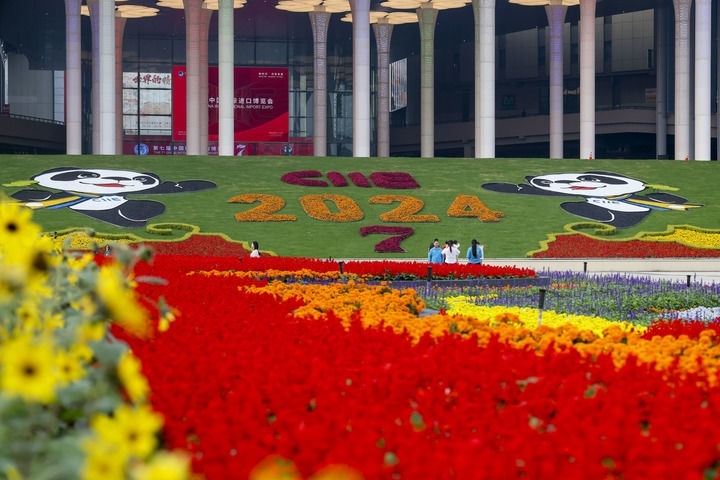2024年11月4日拍攝的第七屆中國(guó)國(guó)際進(jìn)口博覽會(huì)舉辦場(chǎng)地——國(guó)家會(huì)展中心(上海)外景。新華社記者 王翔 攝
