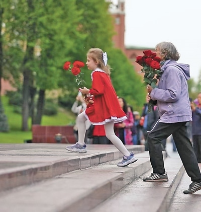 俄羅斯民眾向莫斯科無名烈士墓獻(xiàn)花。