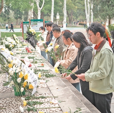 4月4日清明節(jié),湖北武漢江漢大學(xué)的師生自發(fā)前往武漢市解放公園,緬懷為阻擊日寇而英勇犧牲的蘇聯(lián)援華航空隊烈士。