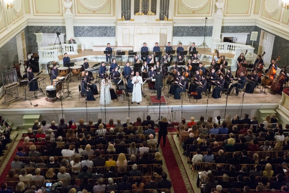 2019年11月13日,在俄羅斯圣彼得堡卡貝拉音樂廳,上海民族樂團(tuán)與安德烈耶夫國立模范民族樂團(tuán)的藝術(shù)家共同為觀眾獻(xiàn)上了一場名為《海上生民樂·和平頌》的精彩音樂會,開啟了上海民族樂團(tuán)2019俄羅斯巡演之旅。