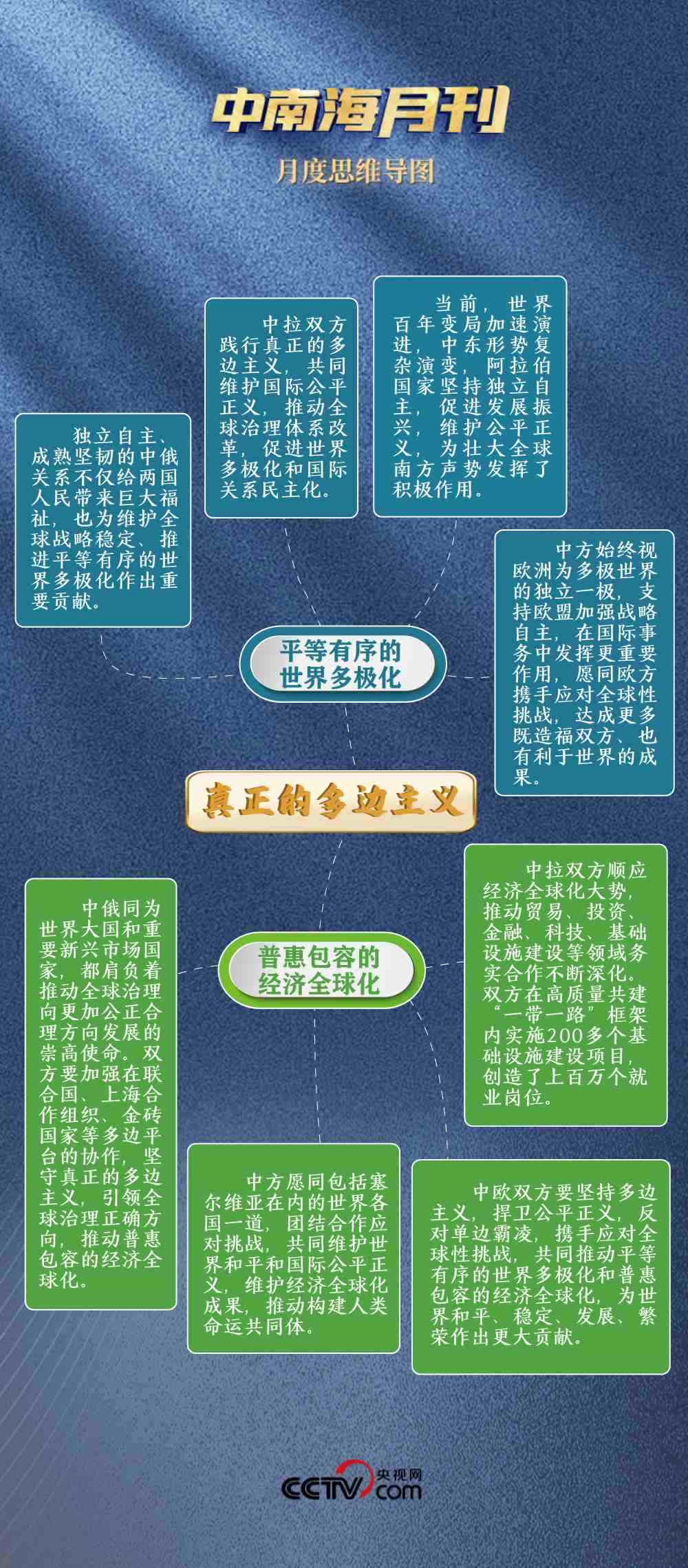 面對單邊主義逆流,堅定不移推動平等有序的世界多極化。不為一時一事所惑,不為風(fēng)高浪急所擾,與俄方達成“共同弘揚正確二戰(zhàn)史觀,維護聯(lián)合國權(quán)威和地位,維護國際公平正義”的共識;與歐盟“深化戰(zhàn)略溝通,增進理解互信,鞏固伙伴定位”;同拉方攜手啟動團結(jié)、發(fā)展等五大工程,推動中國同全球南方國家相互支持、團結(jié)合作。