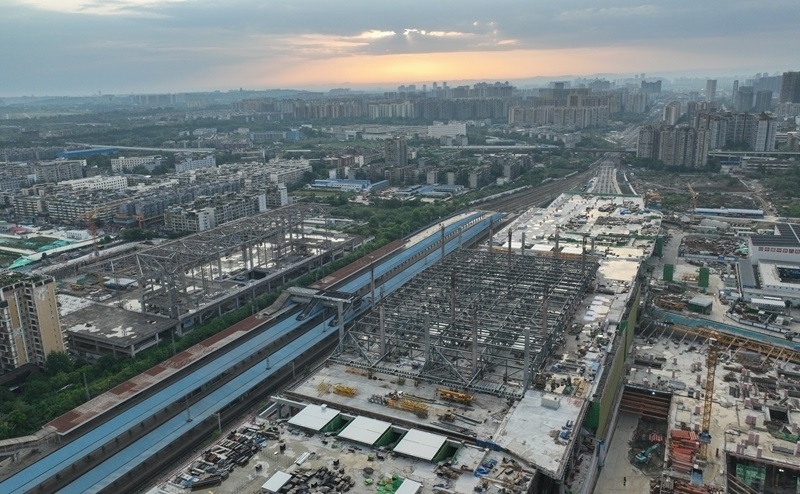 成都站位于四川省成都市,是新中國第一條自主建設(shè)的鐵路——成渝鐵路的起始站。為滿足成渝中線高鐵建設(shè)、市域鐵路公交化改造建設(shè)等需要,車站進(jìn)行了拆除擴(kuò)建。車站建設(shè)采取“分步施工、南北交替”方案,將施工區(qū)域劃分為南北兩個(gè)作業(yè)面,實(shí)現(xiàn)了鐵路正常運(yùn)輸與工程建設(shè)同步推進(jìn),完成銜接成渝、達(dá)成、寶成等多條鐵路線路的撥接與改造。