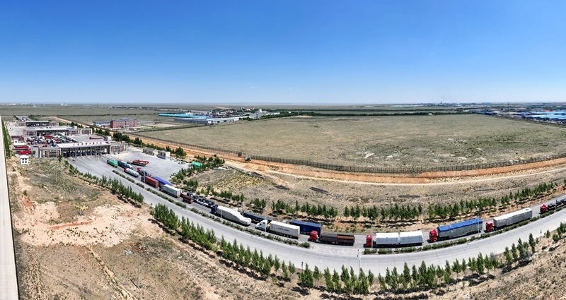 6月22日拍攝的內(nèi)蒙古二連浩特公路口岸(無人機(jī)照片)。